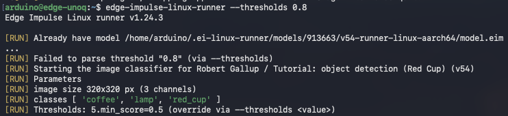 I’m experimenting with edge-impulse-linux-runner and have tried using the --threshold option. I get the following output which suggests the --threshold value isn’t being parsed: