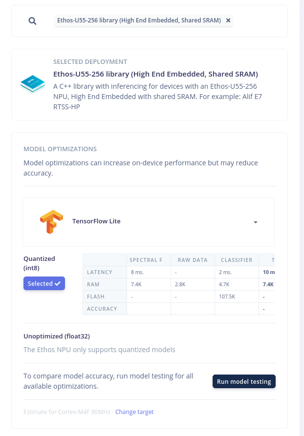 - Goal: Run an Edge Impulse model on the Ethos-U55 NPU instead of the CPU.