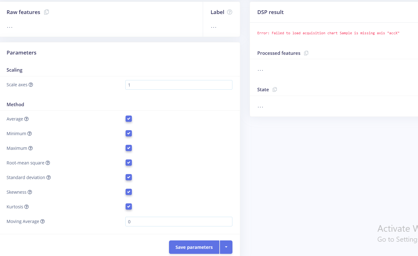 i have accelerometer and humidity, temperature data in the data acquisition. using flatten and classification blocks and saving the impulse. after went to the next step, i was hitting this error below: