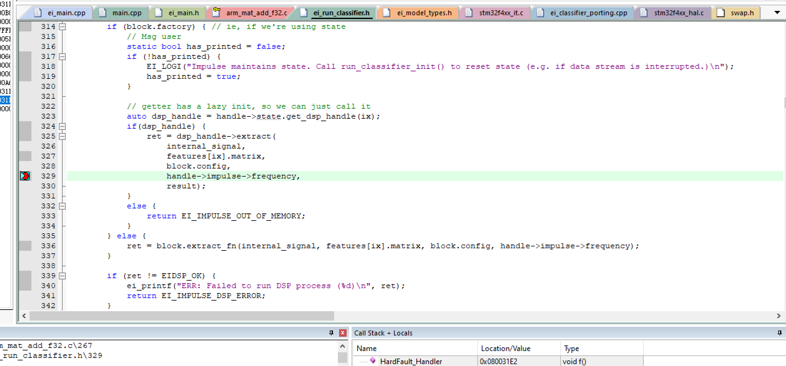 When I start debug and execute the following function, it causes the STM32 to enter a HardFault infinite loop.